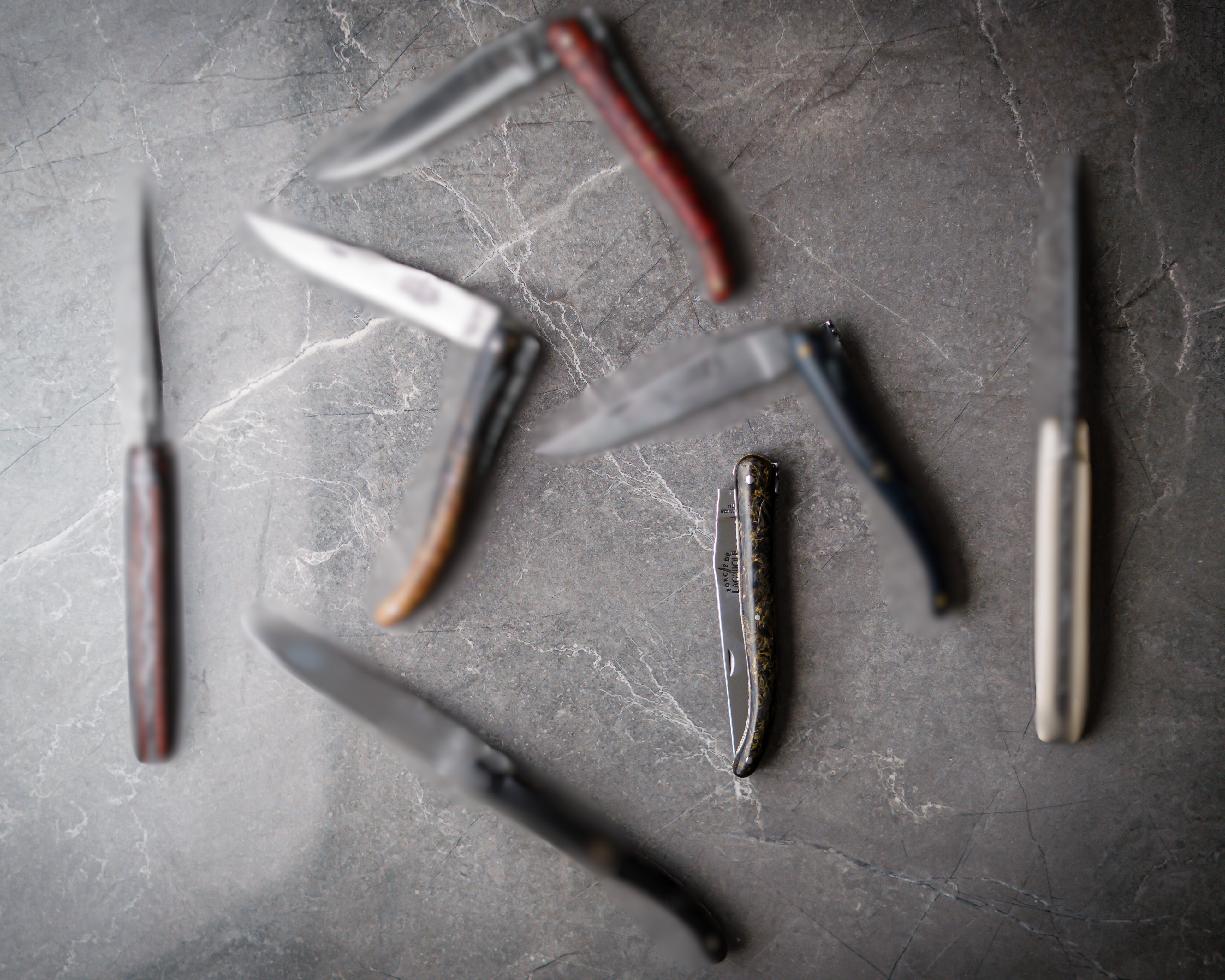 The gold carbon fibre handle shimmers with woven metallic tones, combining lightness, strength and a refined contemporary allure. Its high-polish finish reveals a luminous depth that plays beautifully with light, evoking both innovation and elegance. Each detail is conceived and perfected under one roof, reflecting Forge de Laguiole’s uncompromising pursuit of precision.