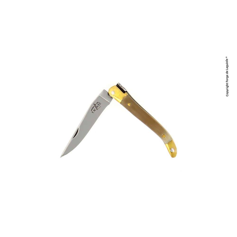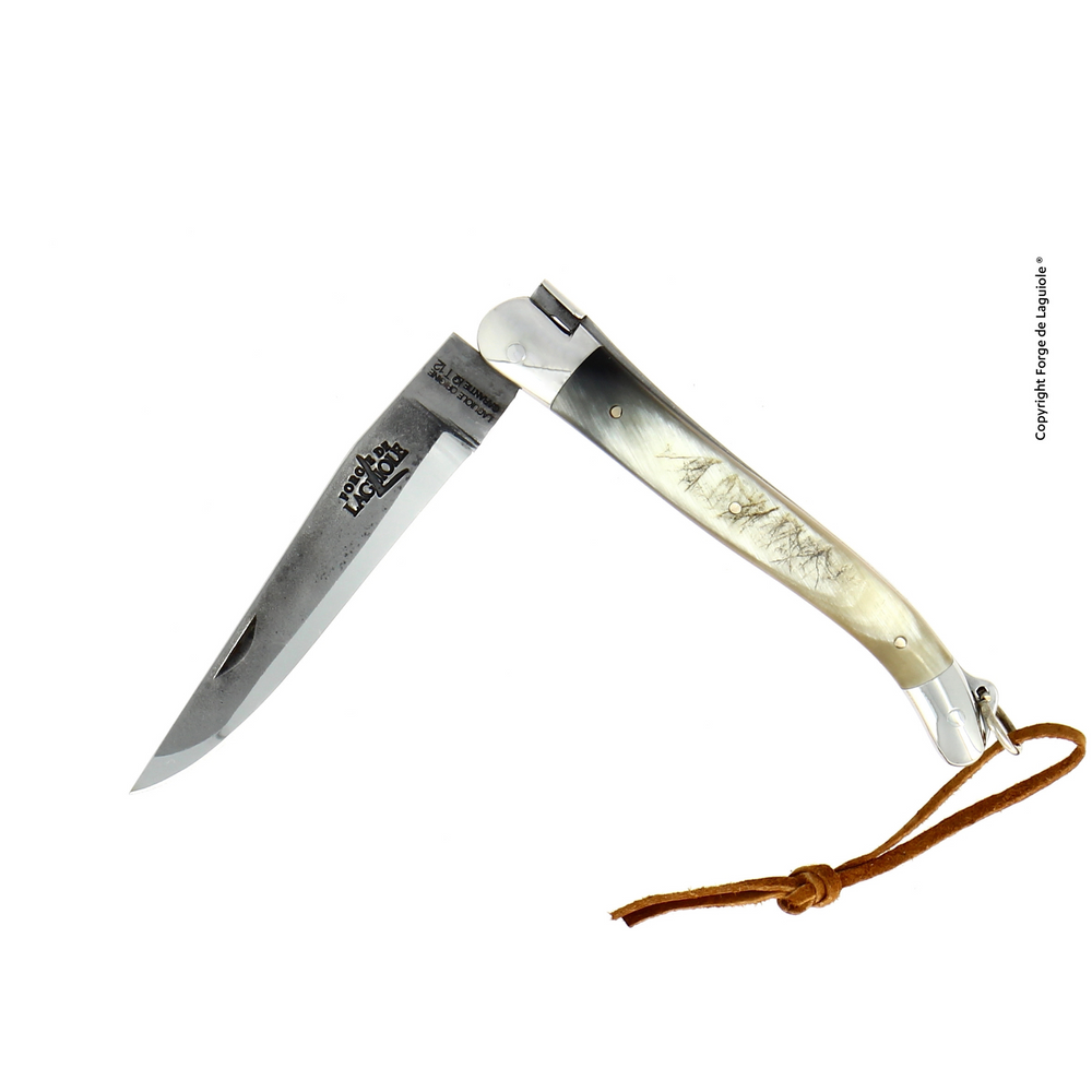 Each blade is hot-forged from French T14 steel, a material developed exclusively for Forge de Laguiole®, ensuring an exceptional cutting edge and remarkable durability. The handcrafted handles are made from precious materials, offering a unique and refined touch to every piece.